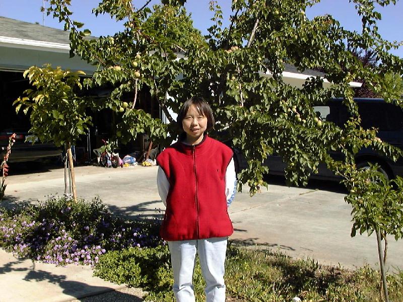 Li Yun in front of her fruit trees.